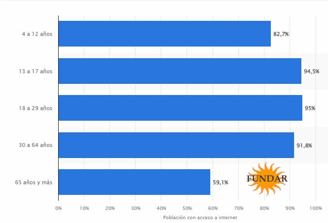 Statista ha realizado una encuesta sobre acceso a internet en Argentina, segmentando por edades y en la que se observa un alto porcentaje de usuarios para la población de 13 a 64 años.
