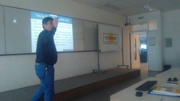 Continuando con el Programa Anual, de la » Escuela de Formación de líderes políticos y sociales» de FUNDAR , el 17 de setiembre, en la Facultad de Ciencias Económicas (UNCuyo) junto a las agrupaciones estudiantiles ACE Y AITU, expuso el Lic. Juan Marcelo Calabria, prestigioso profesional de la UNCuyo e historiador de la vida y obra de San Martín, sobre el tema » San Martín Modelo de Líder Americano» título de uno de sus libros, contando con una masiva participación de jóvenes que en media jornada, tuvieron una activa participación con el disertante sobre la temática de los liderazgos necesarios para la transformación de la sociedad, tomando como ejemplos a San Martín entre otros.